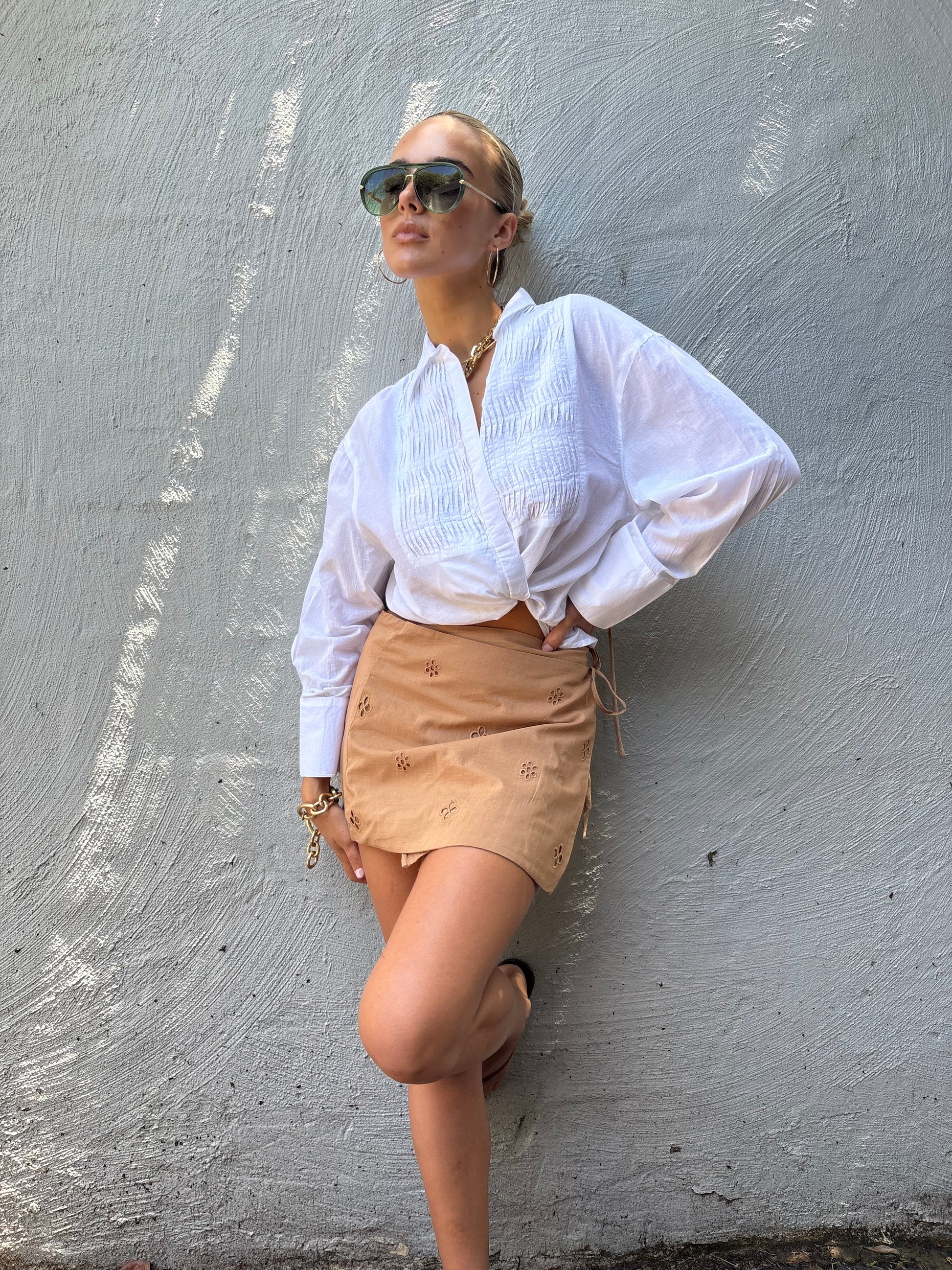 Short, sweet, and sun-ready. The Cleo Mini Skirt is cut from a dreamy cotton broderie with a wrap style and leg-lengthening silhouette. With its adjustable waist tie and soft embroidered detailing, it's your go-to for beach days, market wanders, and golden hour spritzes. 100% Cotton. Designed in Melbourne. Made for endless summer days ✨Free Express Shipping ✈️Easy 10-day returns 🔄