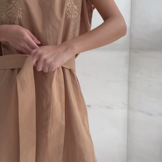 This light caramel colour embroidered kaftan is the ultimate throw on piece for sun kissed days. Featuring delicate white embroidery, a loose fit with a tie belt for adjustable shaping, it is designed to take you from the beach to strolling the local shops in style. Lightweight and made from a beautiful gauze cotton making it a must have staple in your resort wear collection. 100% Cotton. Designed in Melbourne. Made for endless summer days ✨Free Express Shipping ✈️Easy 10-day returns 🔄